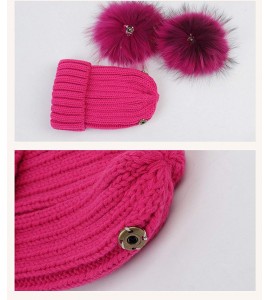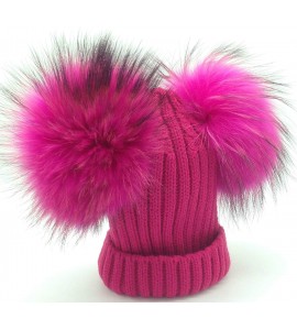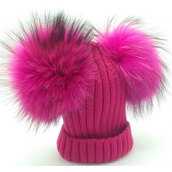 BrillaBenny Cappello Baby PON PON Doppio Staccabile Vera Pelliccia Fuxia Fuchsia Pink (12 Mesi - 3 Anni) Cappellino CUFFIETTA Cu