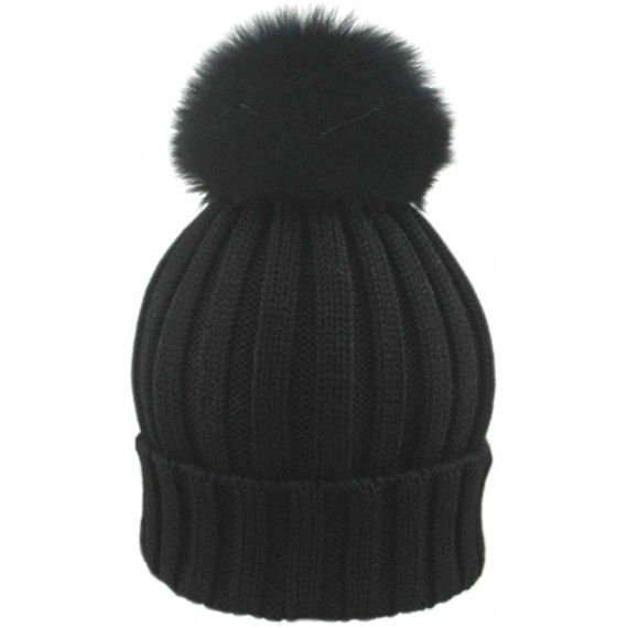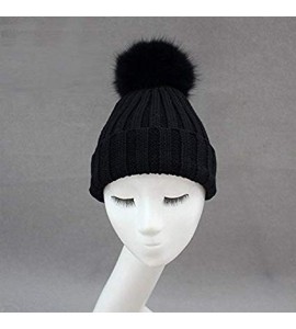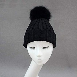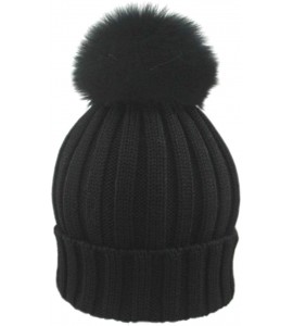 BrillaBenny Cappello Nero Cuffia PON PON Lana Merinos e Pelliccia Volpe Vera Nera (x Ragazza, Donna, Uomo, Adulto) Cappellino Ha