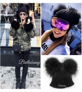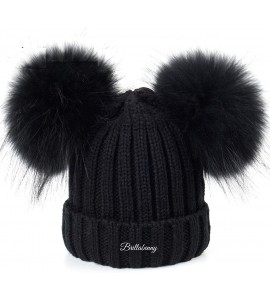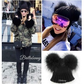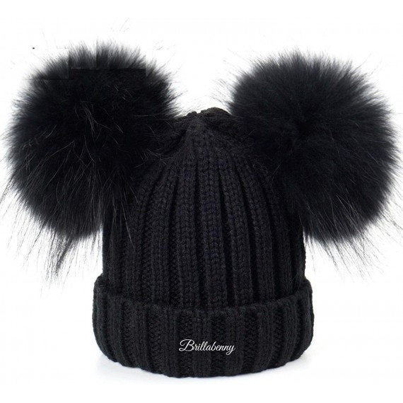 BrillaBenny Cappello Pelliccia Doppio PON PON Nero Black (Ragazza, Ragazzina, Donna, Kids, Adulto) Cappellino Unisex Cuffia Hat
