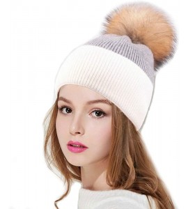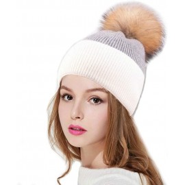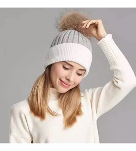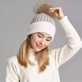 BrillaBenny Cappello Cashmere PON PON Pelliccia Mamma/papà - Bambino/Bambina Bianco e Grigio Cappellino Cuffia Donna Uomo Bambin