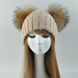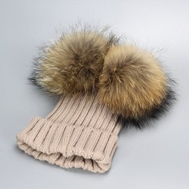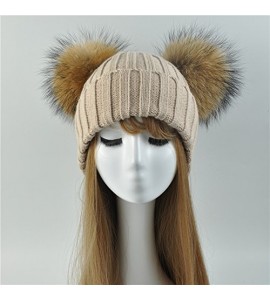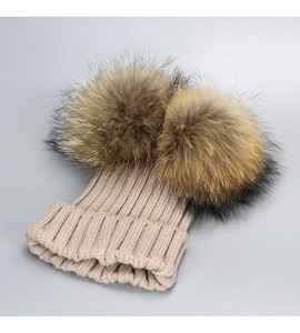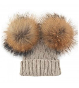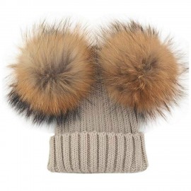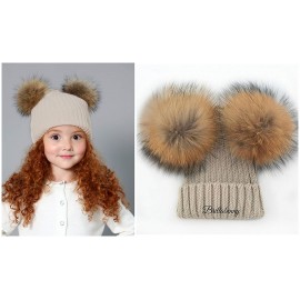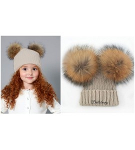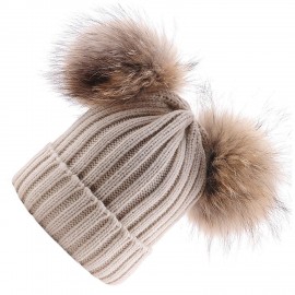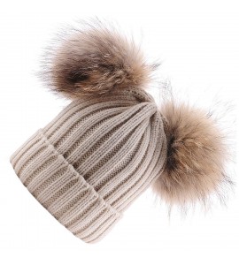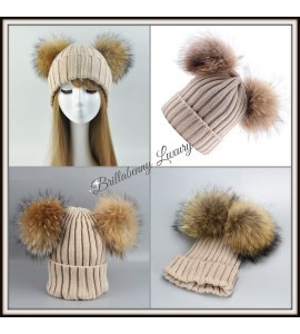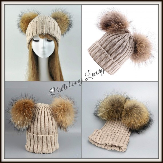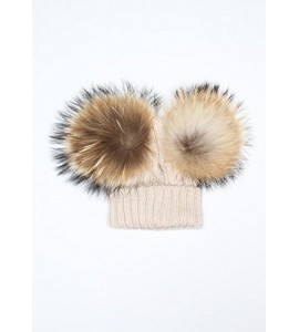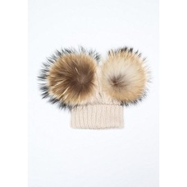 BrillaBenny Cappello PON PON Doppio Staccabile Vera Pelliccia Beige (1-4 Anni) Cappellino Cuffia Hat Baby Luxury Double Pom Poms