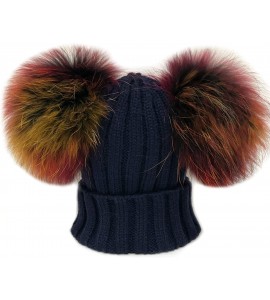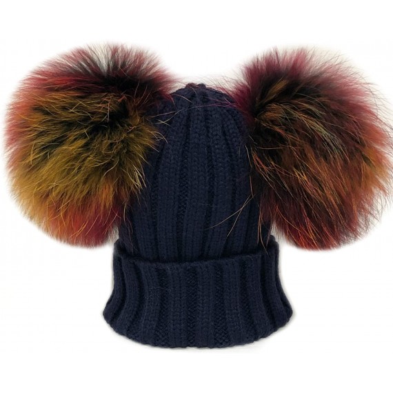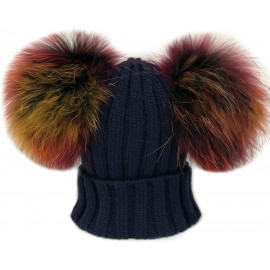 Cappello Cuffia Royal Blu Doppio Pon Pon Avion Vera Pelliccia (Ragazzo, Ragazza, Uomo, Kids, Donna, Adulto) Unisex Hat Fur Luxu
