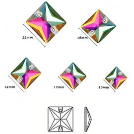BrillaBenny 2 Pietre Strass Quadrato da Cucire Doppio Foro Cristallo Strass Aurora Boreale Square Flatback Shape Stone Sewing Se