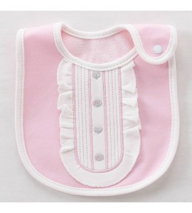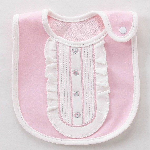 BAVAGLINO BAVETTO NEONATO BABY FEMMINUCCIA BAMBINA ROSA PINK con ROUCHES in Cotone Spugna x Bimba Bebè Neonato Regalo Bibs Infan