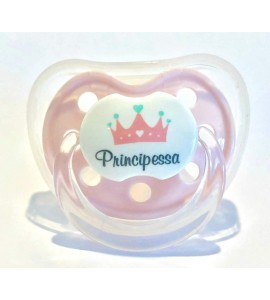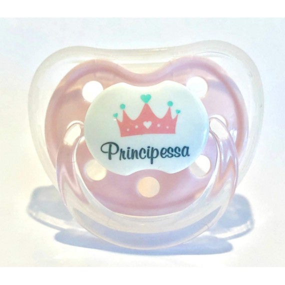 CIUCCIO SUCCHIETTO ROSA PINK PERSONALIZZATO CON FRASEPrincipessa" +6 MESI SILICONE Neonata Pacifier Newborn Princess"
