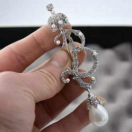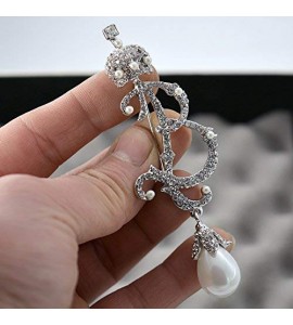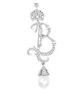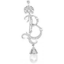 Spilla Stemma Reale Iniziale B Monogram con Strass, Cristalli, ZIRCONI, Perla, Corona/Alta BIGIOTTERIA Pin Brooch Baroque Crysta
