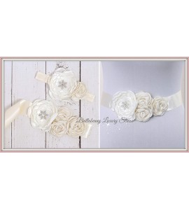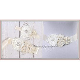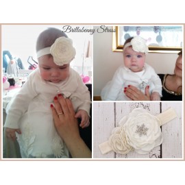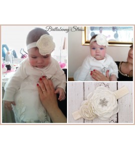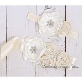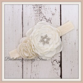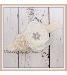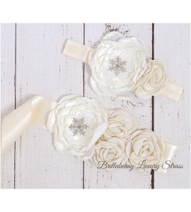 FASCIA ELASTICA BABY CAPELLI RASO/SETA + CINTURA A COMPLETO CON CRISTALLO DI NEVE STRASS SNOWFLAKE per battesimo, comunione, wed