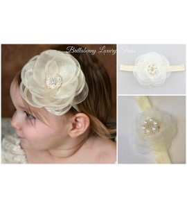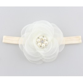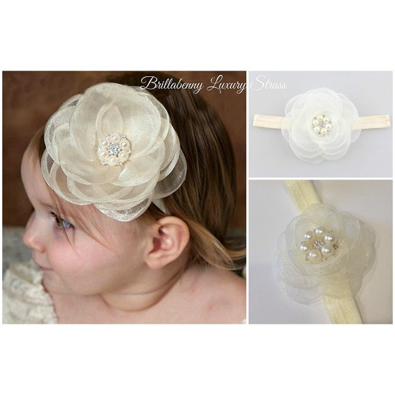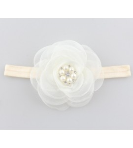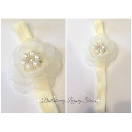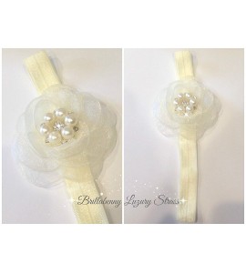 FASCIA ELASTICA BABY CAPELLIFIORE ORGANZA", CON PERLE E CRISTALLI STRASS per battesimo, comunione, wedding, matrimoni, festa, p"