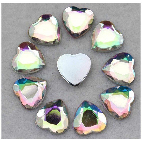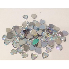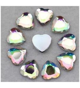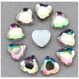 10 CUORI STRASS 1cm / 12mm CABOCHON NON TERMOADESIVI NO-HOTFIX HEART AURORA BOREALE AB CRYSTAL Cuore Sfaccettato