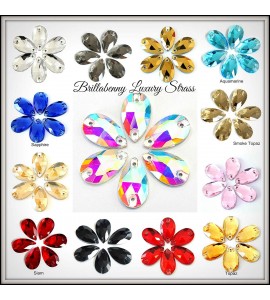 BrillaBenny Mix Gocce Pietre Strass A Goccia da Cucire (2 Fori) Crystal TERADROP x Decori Abiti Gara Danza Dance Dress Drop Luxu
