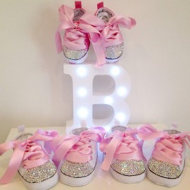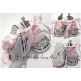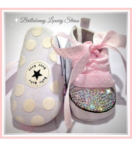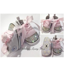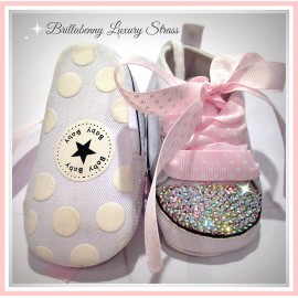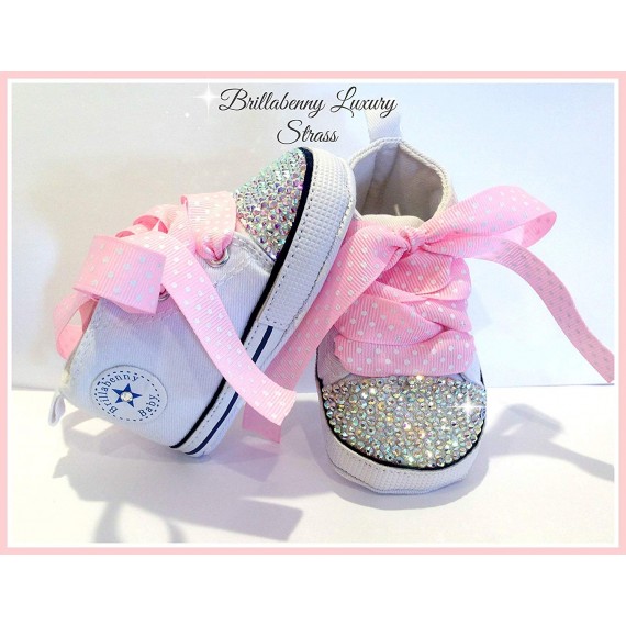 SNEAKERS BABY SHOES BIANCHE STRASS Aurora Boreale 3-6 MESI/NUM 16-17 Scarpine Neonato Scarpe Battesimo Crystal Bebè Infant Luxur