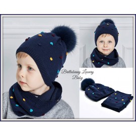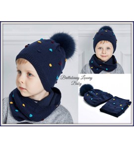 BrillaBenny Cappello E Sciarpa Doppio PON PON Pelliccia MURMASKY Celeste Azzurro 1-3 Anni Bimbo Cappellino Cuffia Hat Scarf Ligh