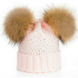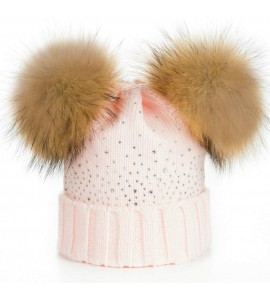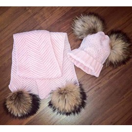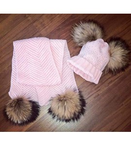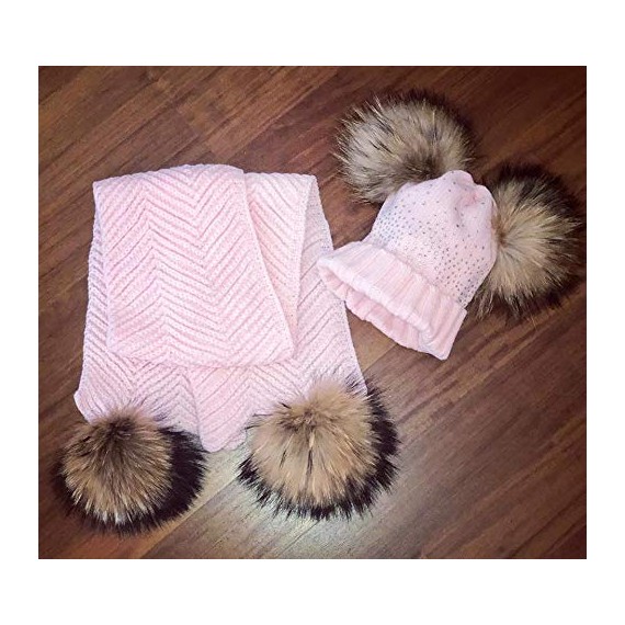 BrillaBenny Cappello + Sciarpa Rosa Doppio PON PON Pelliccia Beige 1-4/5 Anni Bimba Bimbo Cappellino Cuffia CUFFIETTA Hat Scarf