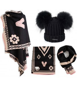 BrillaBenny CAPPELLO + SCIARPA STOLA PASHMINA Misto Lana e Cashmere (x Ragazza, Ragazzina, Adulto) Cuffia Doppio Pon Pon Pellicc
