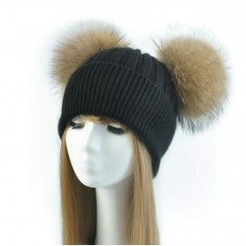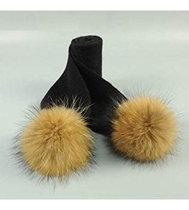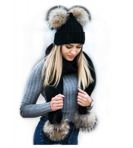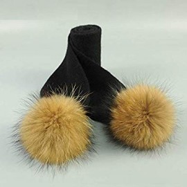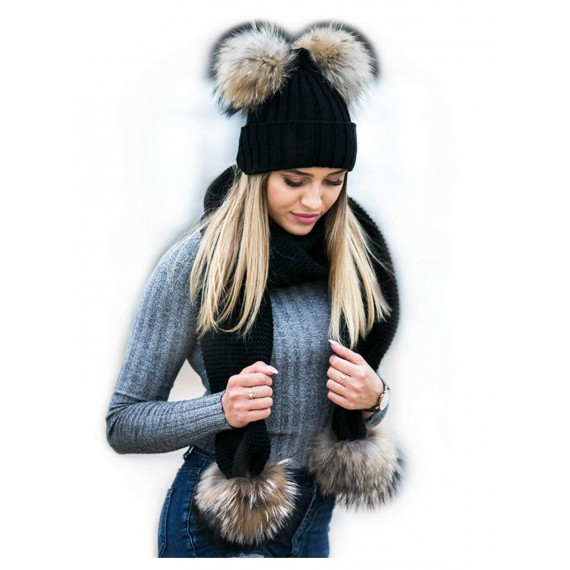 BrillaBenny CAPPELLO + SCIARPA PASHMINA NERA / 4 PON PON PELLICCIA MISTO CASHMERE (x Ragazza, Donna, Adulto) Cuffia Doppio Pon P