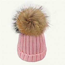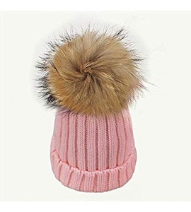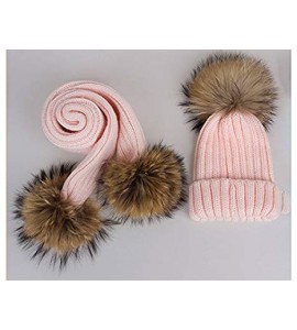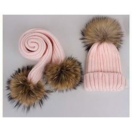 BrillaBenny Cappello + Sciarpa Rosa Doppio PON PON Pelliccia Beige 1-4/5 Anni Bimba Bimbo Cappellino Cuffia CUFFIETTA Hat Scarf