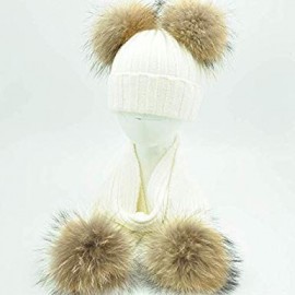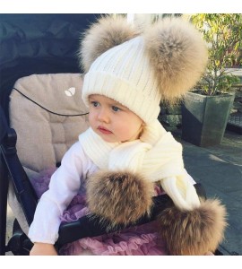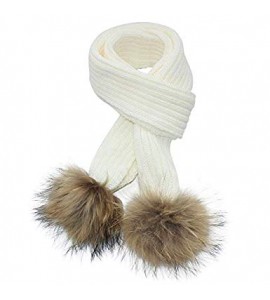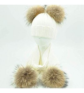 BrillaBenny Cappello Doppio PON PON + Sciarpa Vera Pelliccia MURMASKY Bianco 1-3 Anni Bimba Cappellino Cuffia CUFFIETTA Hat Scar