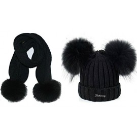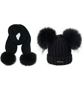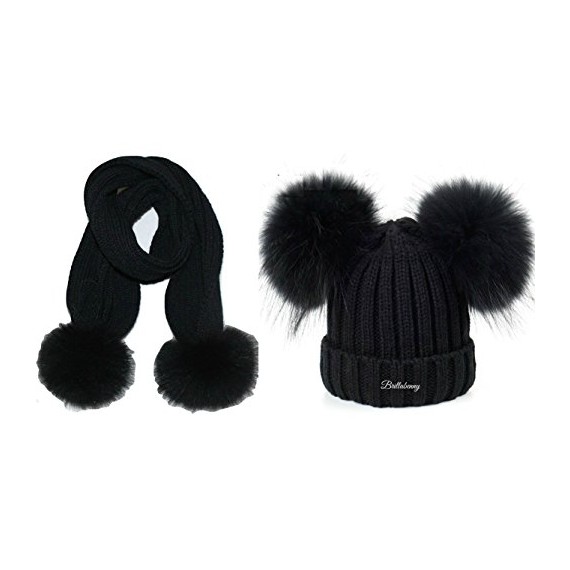 Cappello Nero Doppio Pon Pon + Sciarpa Vera Pelliccia Murmasky Nera 1-4 Anni Bimba Bimbo Cappellino Cuffia Cuffietta Hat Scarf