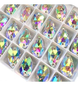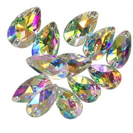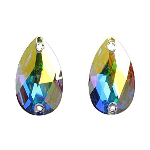 BrillaBenny 2 Pietre Goccia Strass Teardrop Gocce Aurora BOREALE da Cucire o Incollare (2 Pezzi) Pietra Chicco LACRIMA 2 Fori Cr