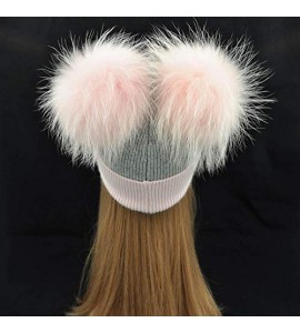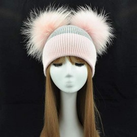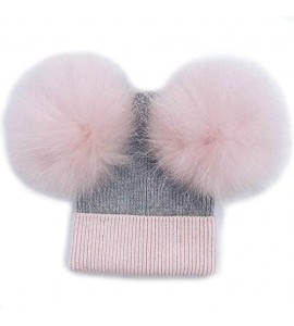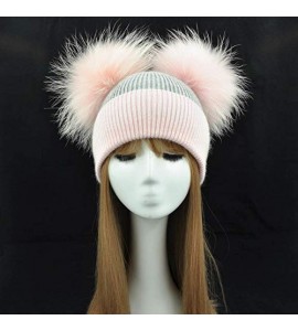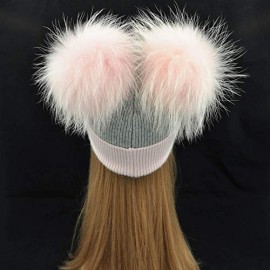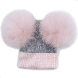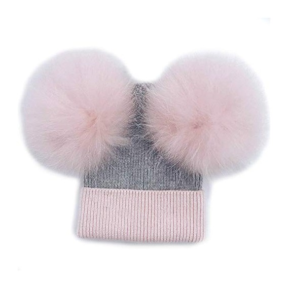 BrillaBenny Cappello Cashmere Doppio PON PON Pelliccia Mamma e Figlia Grigio & Rosa Cappellino Cuffia Donna & Bambina Hat Fur Mu