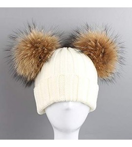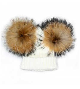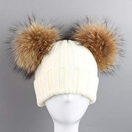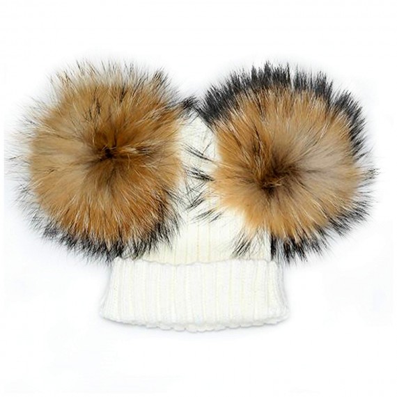 BrillaBenny Cappello Cuffia PON PON Doppio Bianco + Pelliccia Beige Naturale (Ragazza, Donna, Adulti Unisex) Cappellino Hat Whit