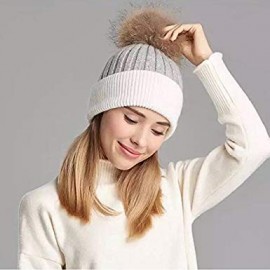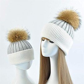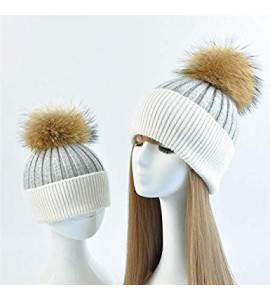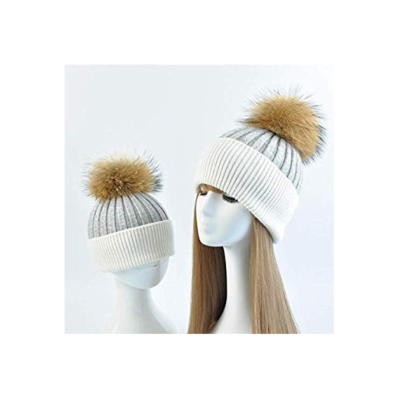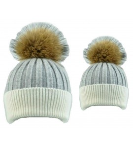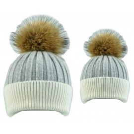 BrillaBenny 2 Cappelli Cashmere PON PON Pelliccia Mamma e Figlia Bianco/Grigio Cappellino Cuffia Donna Bambino Hat Fur Murmasky