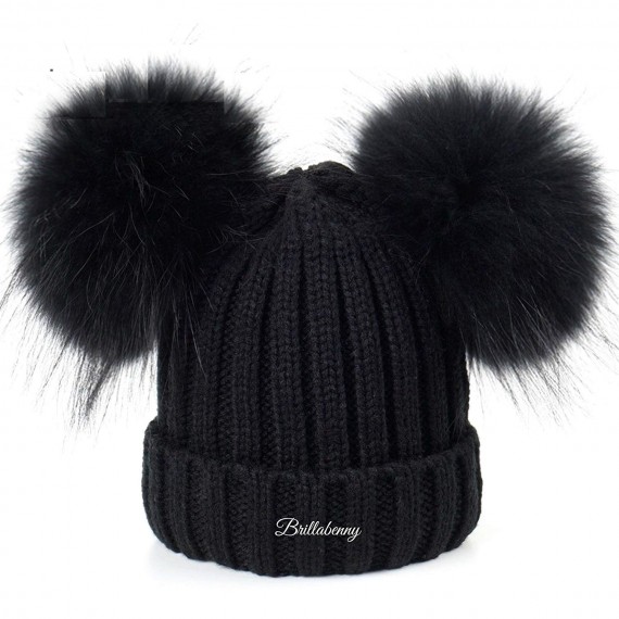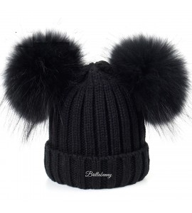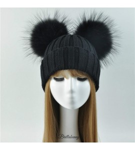 BrillaBenny Cappello Nero PON PON Doppio Staccabile Vera Pelliccia Black Topolino (x Ragazza, Ragazzina, Kids E Adulti) Cappelli