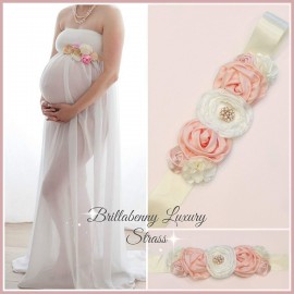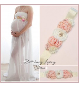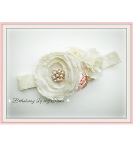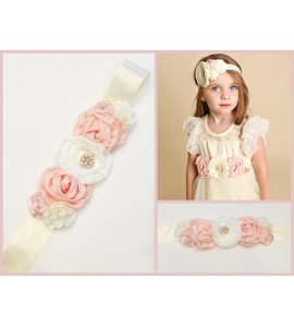 SET BABY: FASCIA ELASTICA LUXURY x CAPELLI RASO/SETA CON FIORI E STRASS + CINTURA A COMPLETO x Battesimo Comunione Wedding Matri