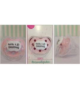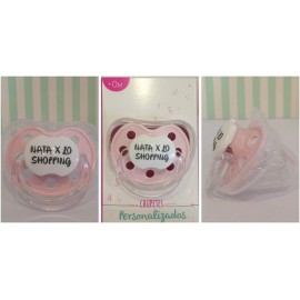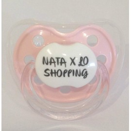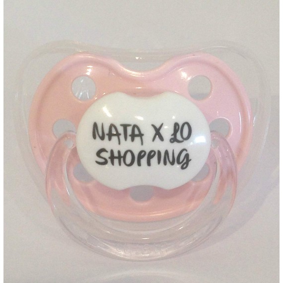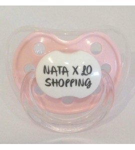 CIUCCIO SUCCHIETTO ROSA PINK PERSONALIZZATO CON FRASENata x lo Shopping" - +0 MESI SILICONE -"
