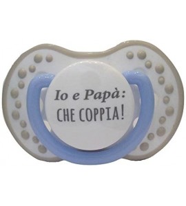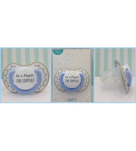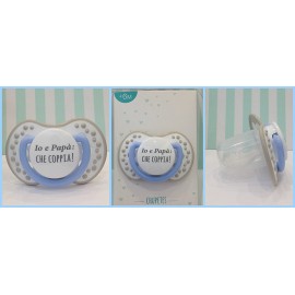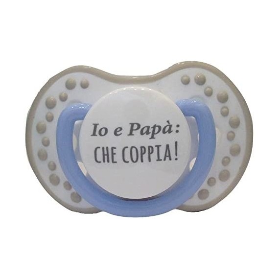 Ciuccio Succhietto Celeste Sky Personalizzato Con FraseIo E Papà Che Coppia!" Taglia +6 Mesi Silicone Neonato Pacifier Newborn"