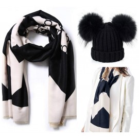 BrillaBenny CAPPELLO + SCIARPA STOLA PASHMINA NERA Misto Lana e Cashmere (x Ragazza, Ragazzina, Adulto) Cuffia Doppio Pon Pon Pe