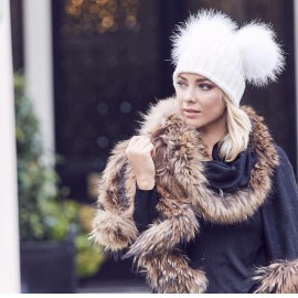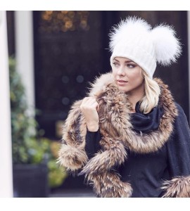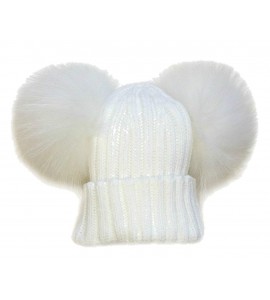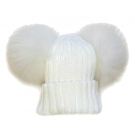 BrillaBenny Cappello Cuffia Bianco Doppio PON PON Pelliccia Bianca (Ragazza, Ragazzina, Donna, Kids, Adulto) Cappellino Unisex H