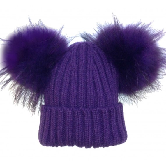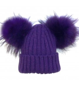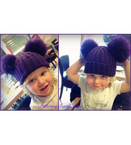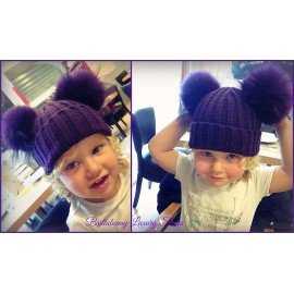 CAPPELLO DOPPIO PON PON PELLICCIA VIOLA Mod. TOPOLINO (1-3 ANNI) CUFFIA CUFFIETTA BABY CAPPELLINO Hat Fur Kids Double Poms Purpl