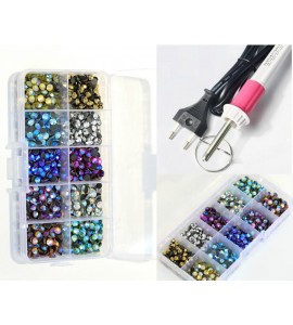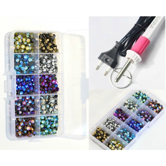 BrillaBenny Kit Decorazione: APPLICATORE A Caldo + Box 1000 Brillantini Strass TERMOADESIVI DmC/MC Quality HOTFIX Colori Misti S