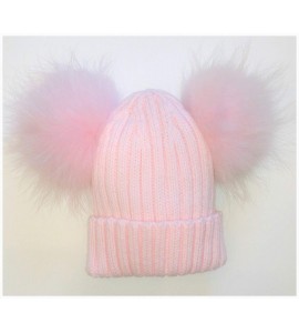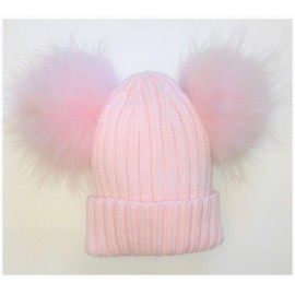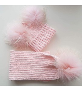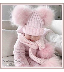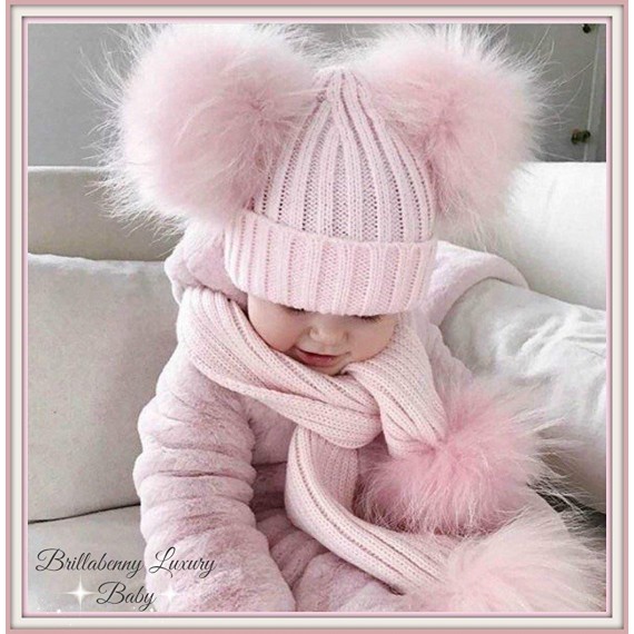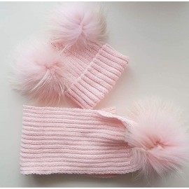BrillaBenny Cappello E Sciarpa Doppio PON PON in Vera Pelliccia Rosa Pink 1-4 Anni Bimba Cappellino Cuffia CUFFIETTA Hat Scarf F