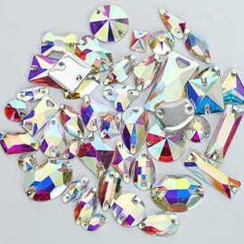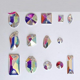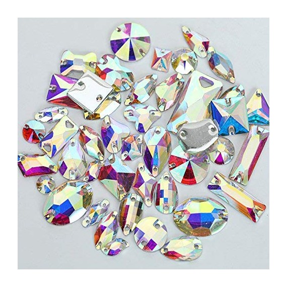 BrillaBenny 100 Pietre Strass da Cucire Aurora BOREALE Acrilico - Resina (2 Fori) Mix da Cucito AB Crystal Goccia, Quadrato, Fio