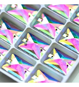 BrillaBenny 2 Pietre Strass RETTANGOLARI - RETTANGOLO da Cucire Doppio Foro Cristallo Strass Aurora Boreale Rectangle Flatback S