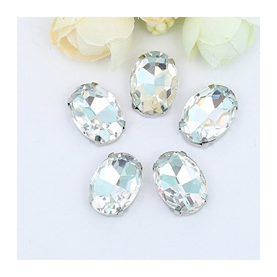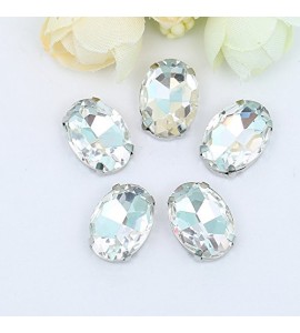 OVALE 13mm x18mm PIETRA STRASS DA CUCIRE TRASPARENTE CRYSTAL CLEAR VETRO GLASS CABOCHON Sew On Stone Claw Oval Shape Transparent