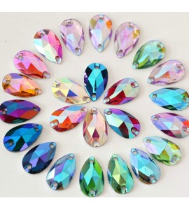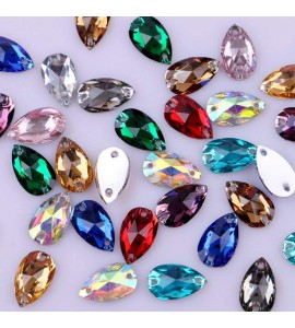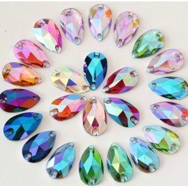 BrillaBenny 50 Pietre Strass da Cucire Gocce Drop Acrilico - Resina (2 Fori) Mix da Cucito Color Mix 13mm x 22mm Shape Stone Sew