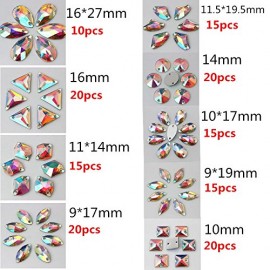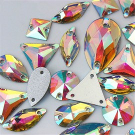 BrillaBenny 150 PIETRE STRASS DA CUCIRE AURORA BOREALE ACRILICO - RESINA (2 FORI) MIX DA CUCITO AB CRYSTAL Goccia, Quadrato, Fio