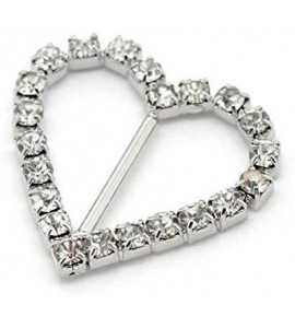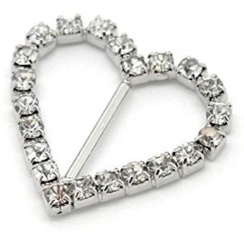 CUORE / FIBBIA CRYSTAL PER NASTRO RASO 17mm Diamond Heart Shaped Buckle Metal Wedding