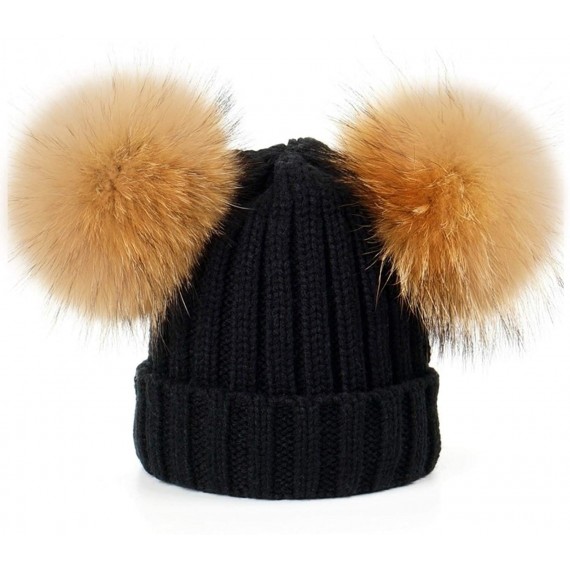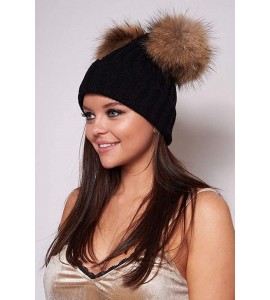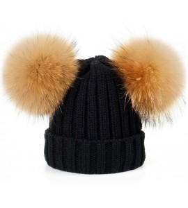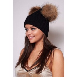 Cappello cappellino in vera pelliccia con doppio PonPon Adulto Unisex uomo donna