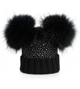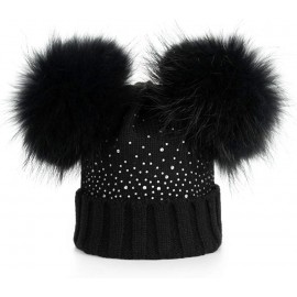 Cappello Cuffia Strass Doppio PON PON Vera Pelliccia 1-5 Anni Bambina Hat Fur Baby