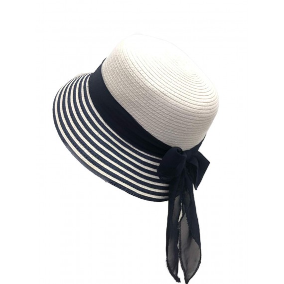 BrillaBenny Cappello Paglia Donna Bianco E Blu Estate Modello da Spiaggia o Passeggio Estivo con Visiera e Fiocco Beach Summer H