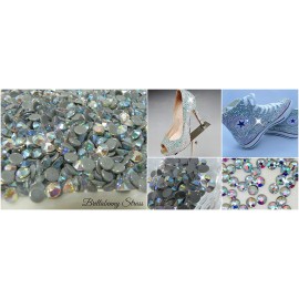 Pacco 1400 Cristalli Aurora Boreale Multicolor Cangianti AB Effect.. Applicabili su vari tipi di tessuto: Cotone, Poliestere, Microfibra, Tessuti di Lana a trama stretta, Seta. Si applicano su tessuti e abbigliamento in due modi: 1) Col Ferro da Stiro ben caldo 2) Con l'apposito Applicatore. Oppure possono essere applicati su superfici rigide con colle aggiuntive specifiche.