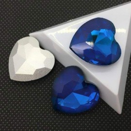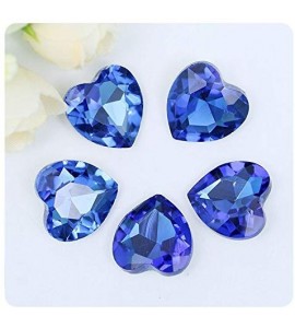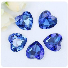 5 Pietre A forma di Cuore sfuse colore Sapphire Blue in Vetro/Glass Quality DMC da incollare o incastonare, applicabili su superfici rigide con colle aggiuntive (per decorazioni su scarpe, abbiagliamento, bomboniere ed oggettistica)., o da incastonare come bottoni. Non Termoadesive / NO-HOTFIX.