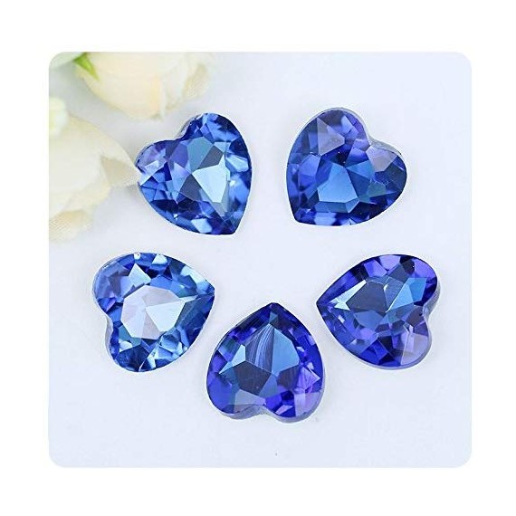 5 PIETRE STRASS CUORE DMC DA INCOLLARE o INCASTONARE come BOTTONI SAPPHIRE BLUE" Heart 14MM Shape Crystal Glass Fancy Stone Poi"