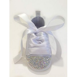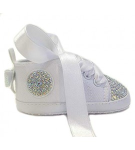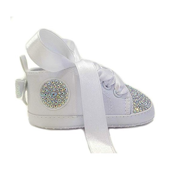 Scarpe 6-9 Mesi Bianche + Cristalli Strass Aurora Boreale Baby Bimba Neonato Battesimo Sneakers Scarpine (Total White Shoes Wed