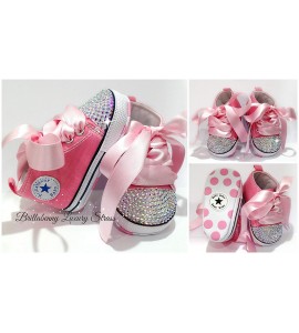 Scarpe Sneakers in tela da neonata 3-6 mesi rosa con cristalli strass e fiocco pailettes