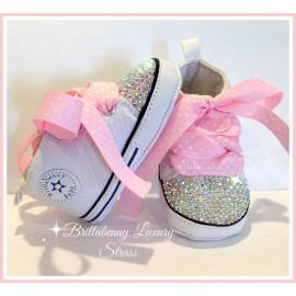 Sneakers neonato strass baby shoes bianco scarpine decorate con cristalli aurora boreale 0-3 mesi (9,5cm)